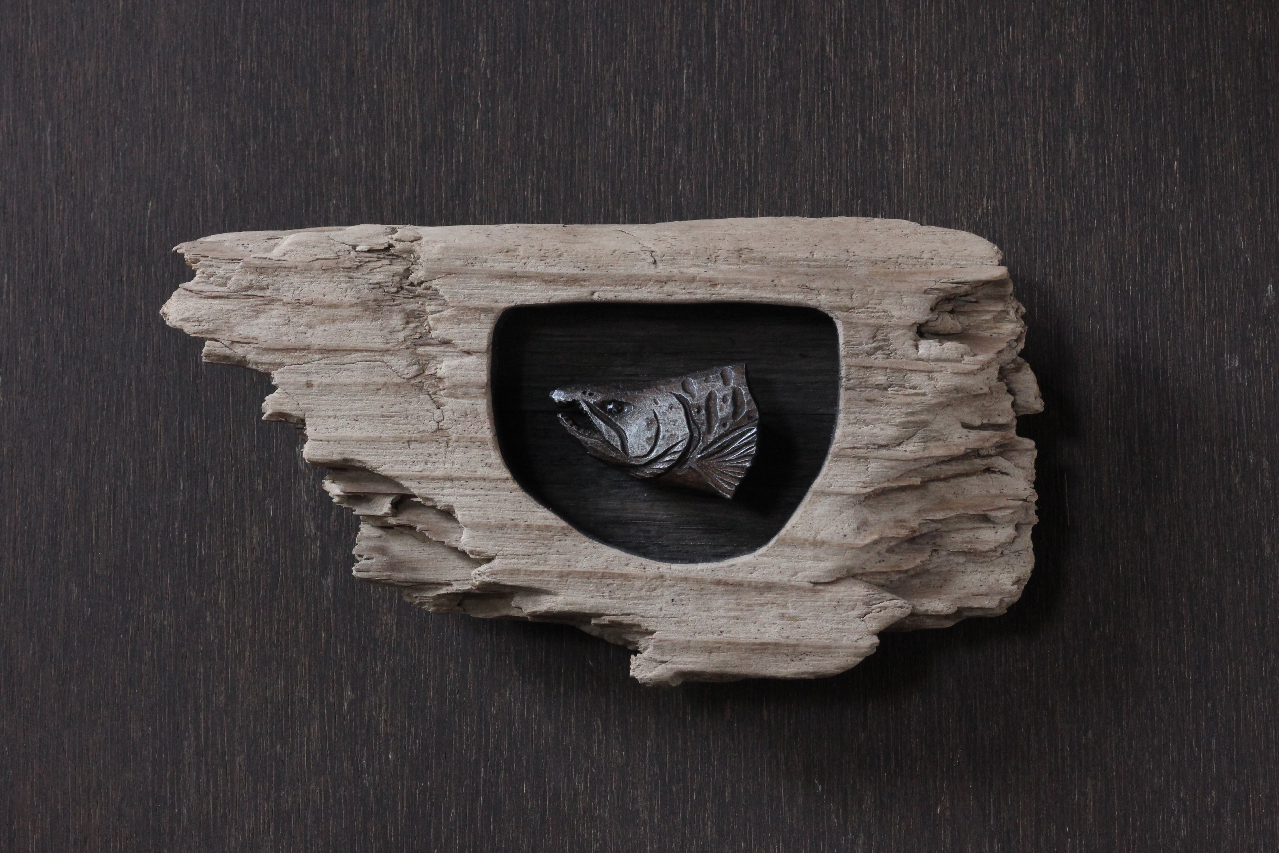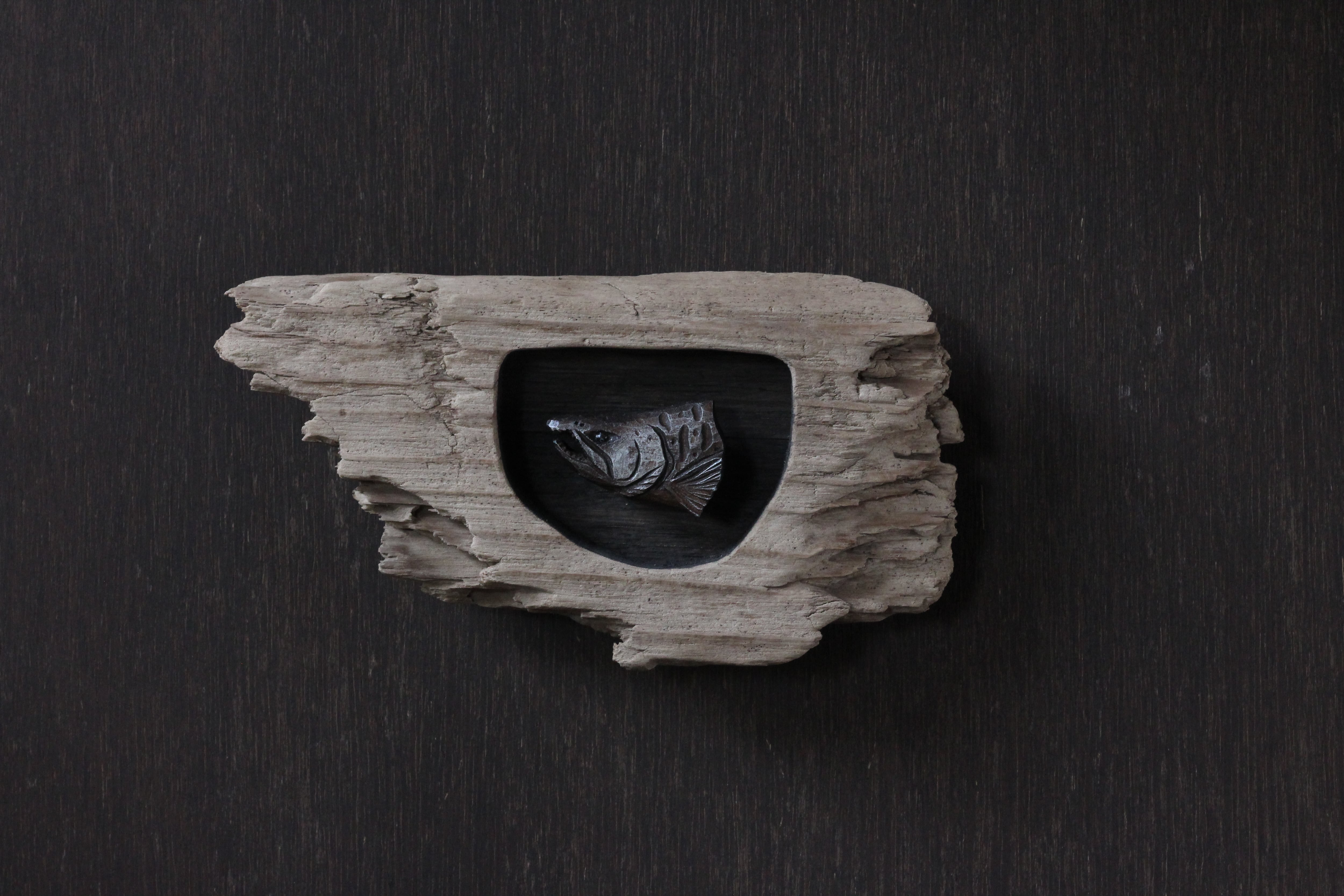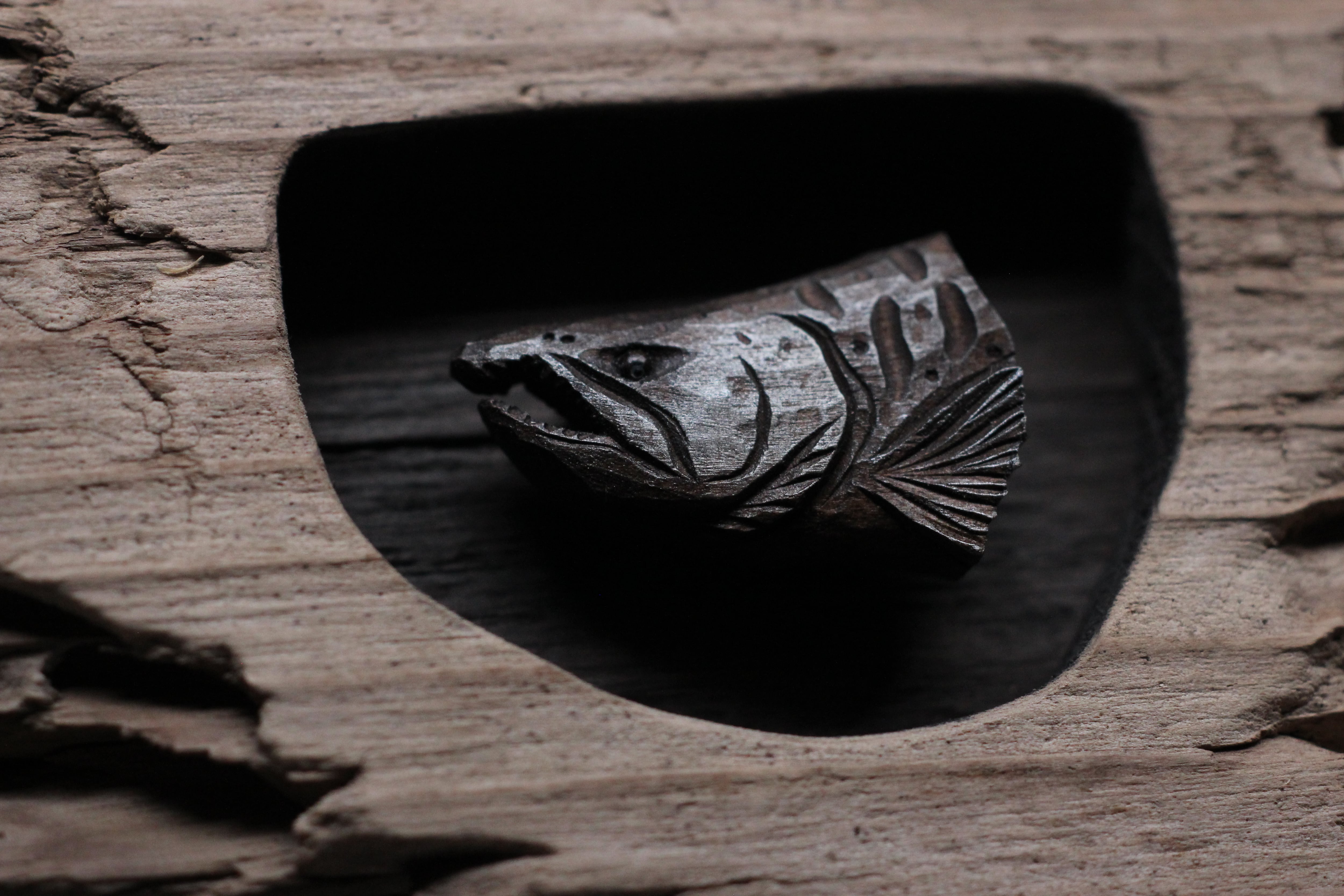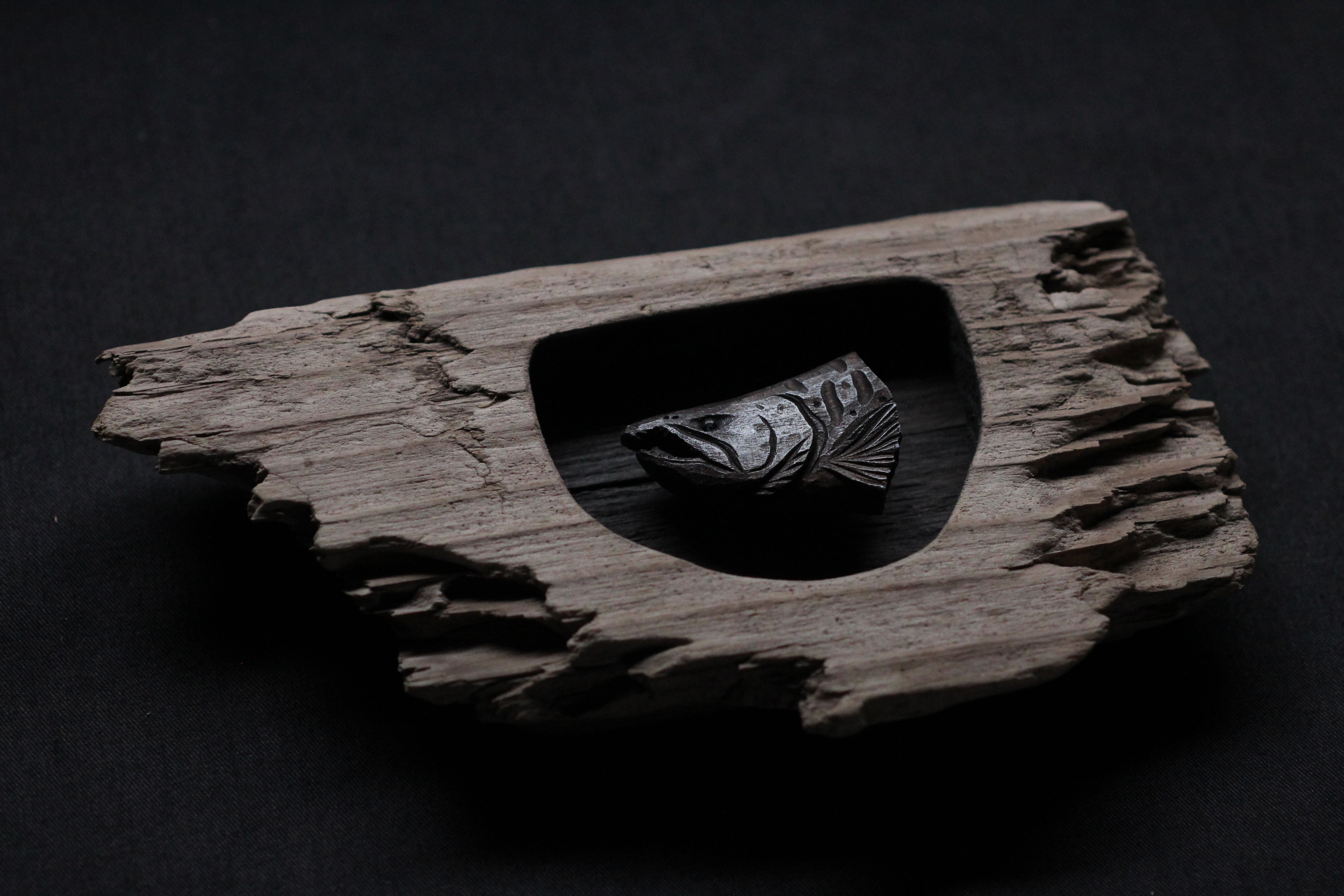 那珂川流域材から彫りだした山女魚の壁掛け・ブローチです。