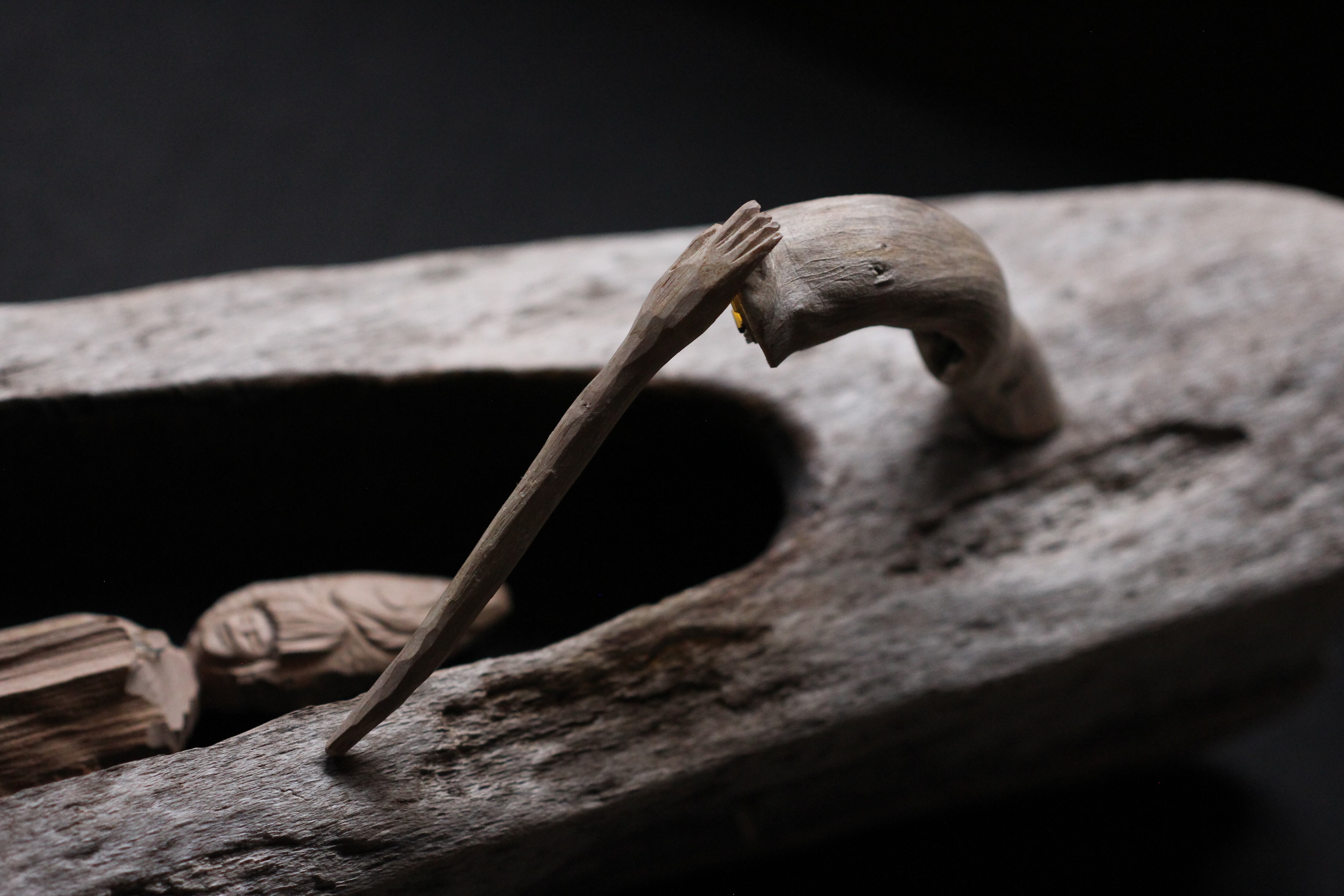 流木厨子側面(写真16)にある右手(右手のライトハンド)をライト部分に当てますとライトがささやかに点灯します(写真17)。