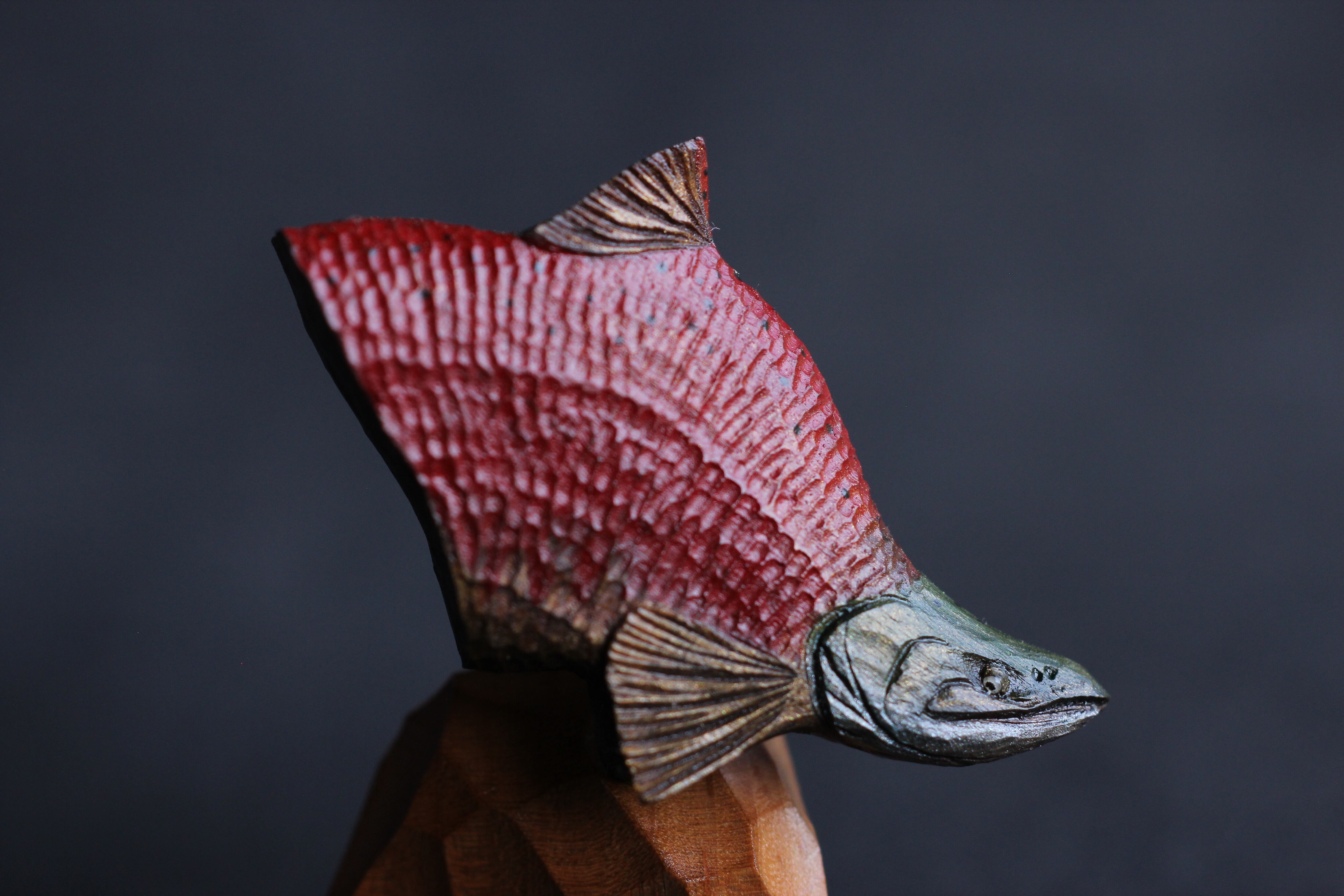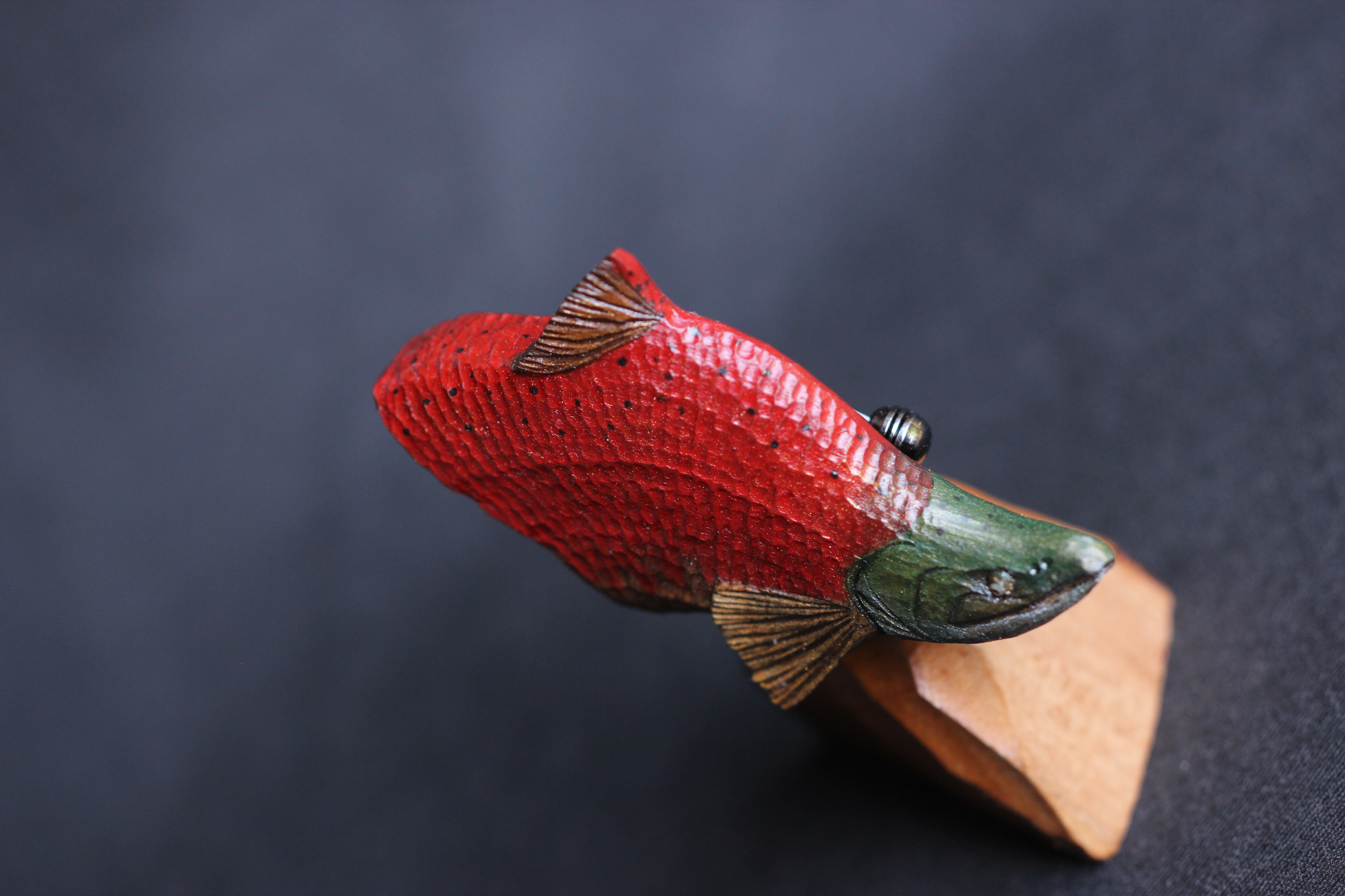 降海型のベニザケのような体高のある雄のヒメマスをイメージして製作しました。