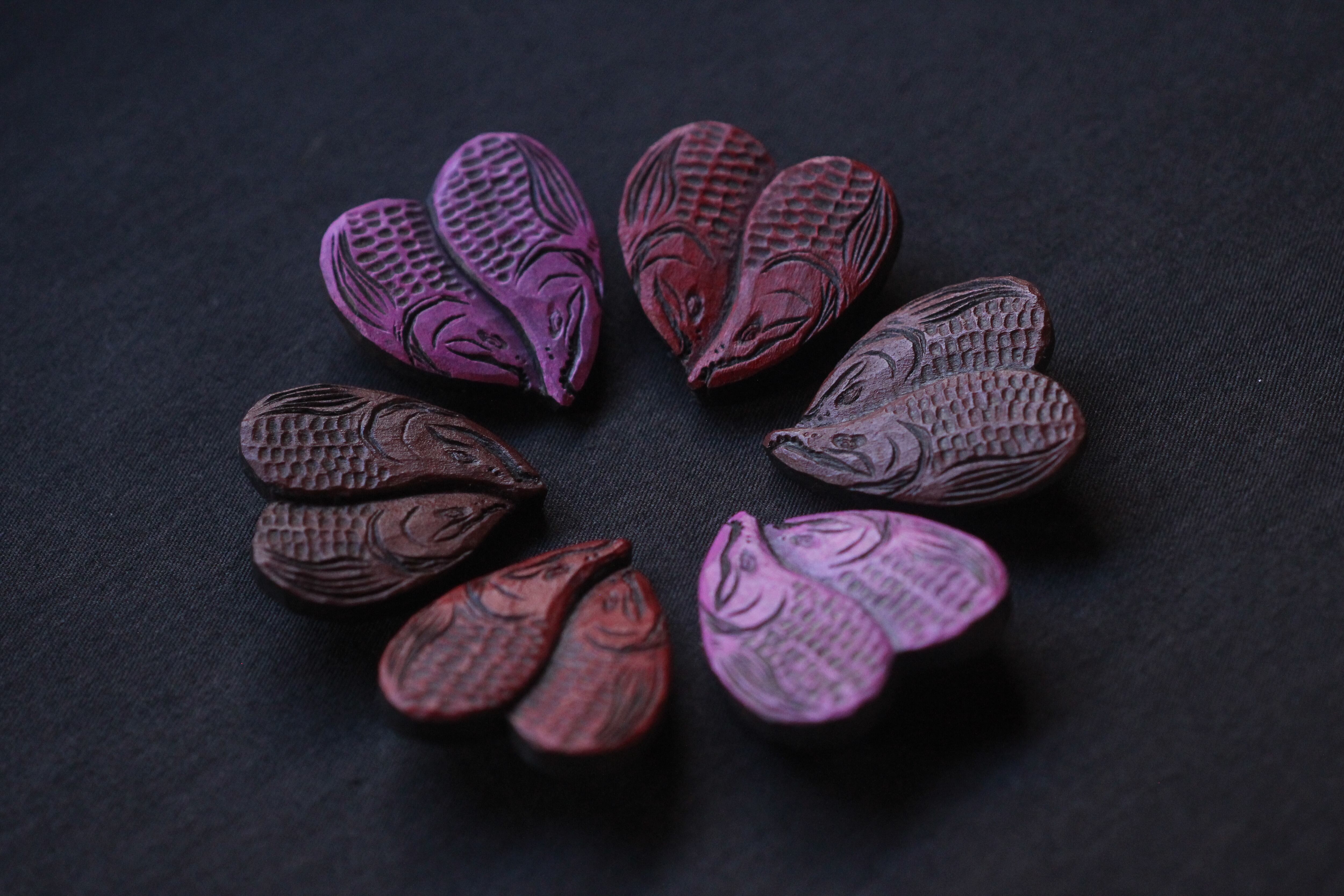 那珂川流域材から彫りだしたハート型の愛鱒。